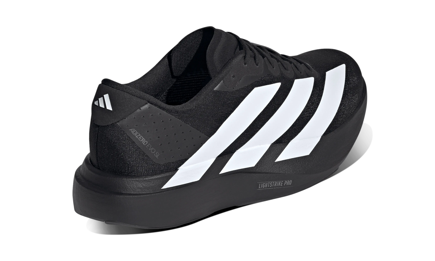 Adidas Adizero Evo SL Black White combines lightness and performance in a minimalist design made for runners seeking speed and comfort. Its black upper with white details offers breathability and support, while the lightweight midsole provides responsive cushioning for training and competitions.